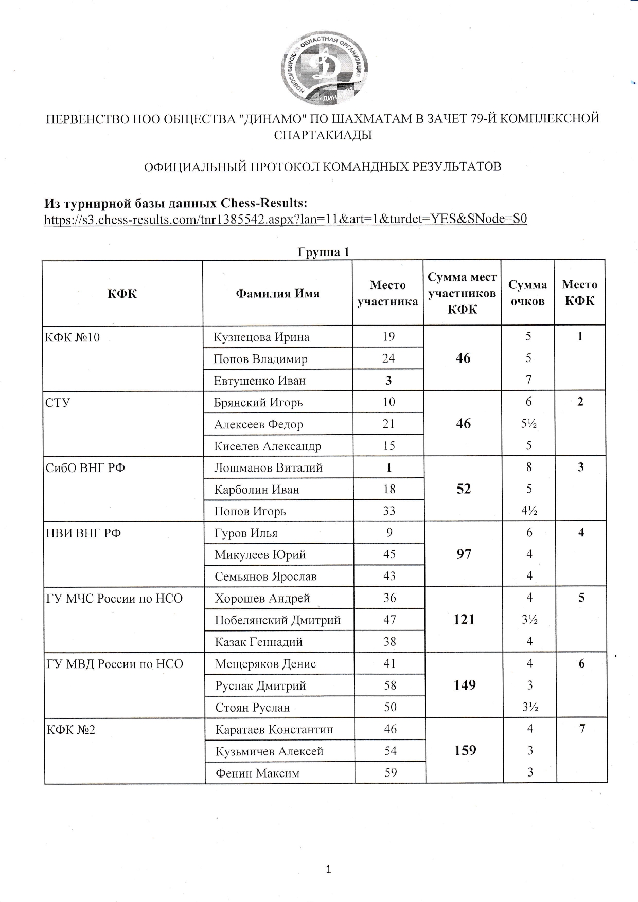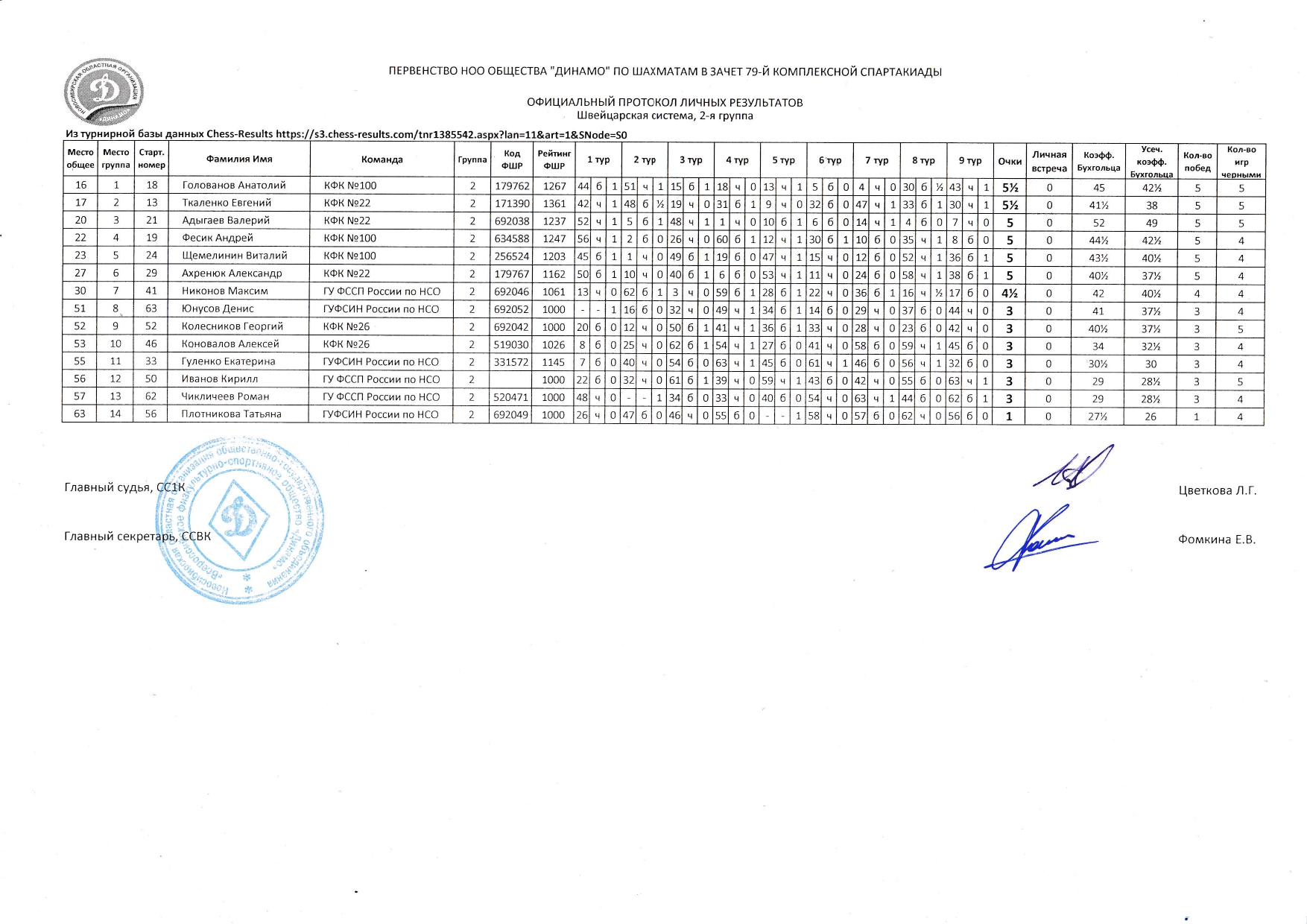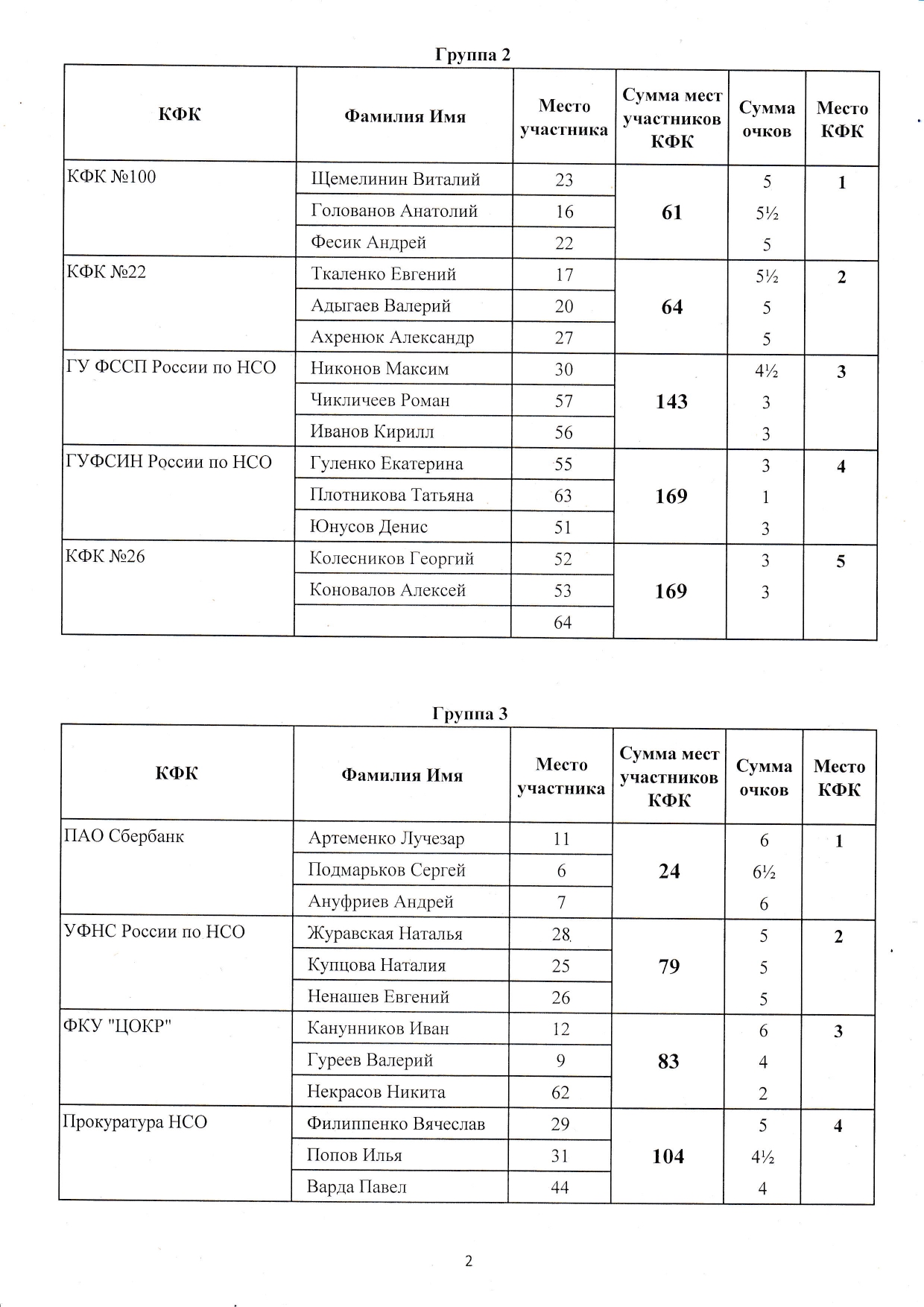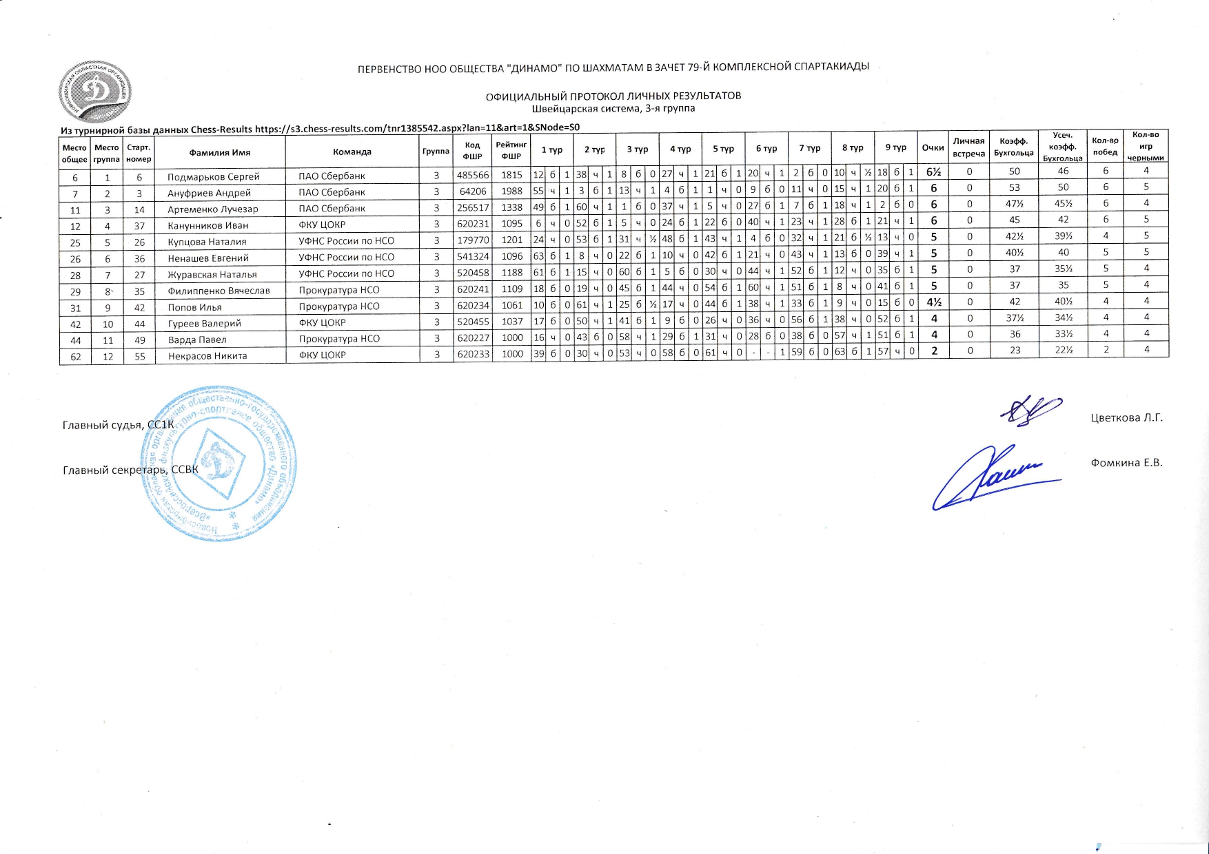 Итоги соревнований по шахматам в зачет 79-й комплексной Спартакиады среди КФК 1, 2, 3 групп, группы "Здоровье"