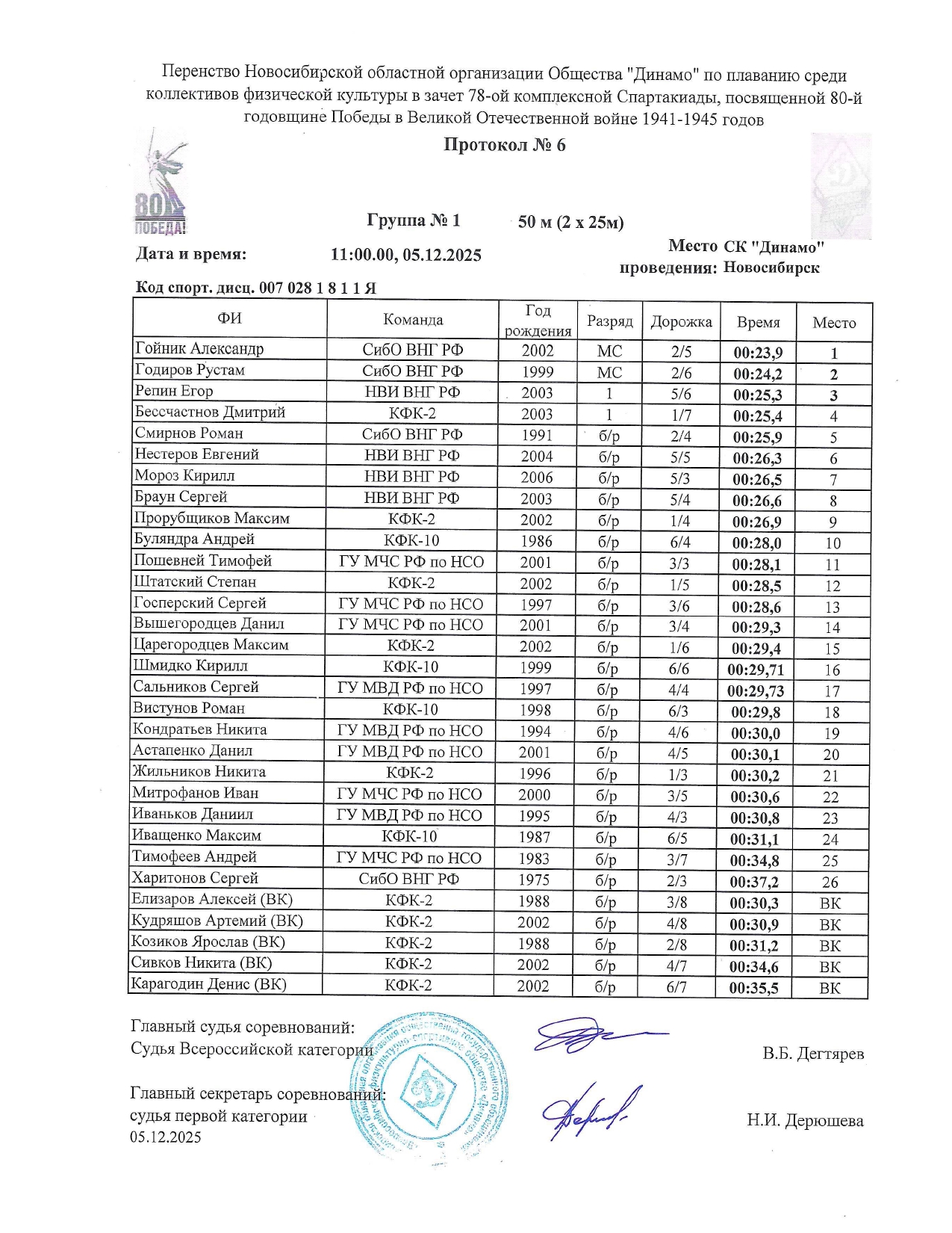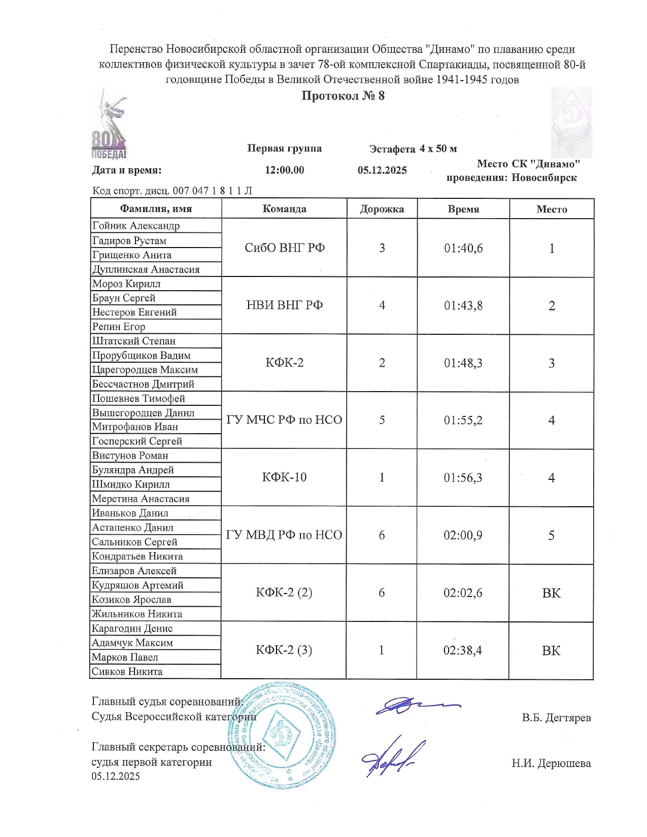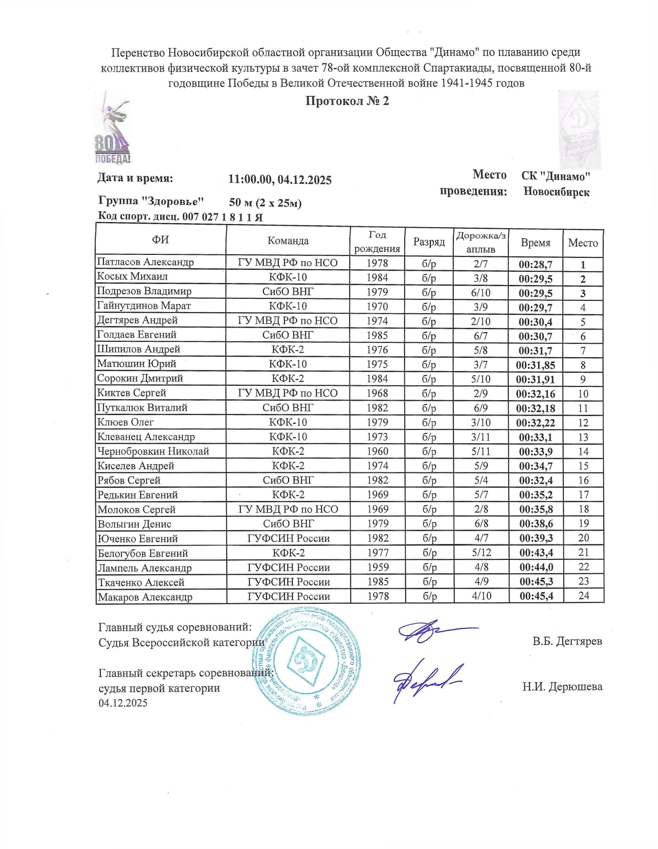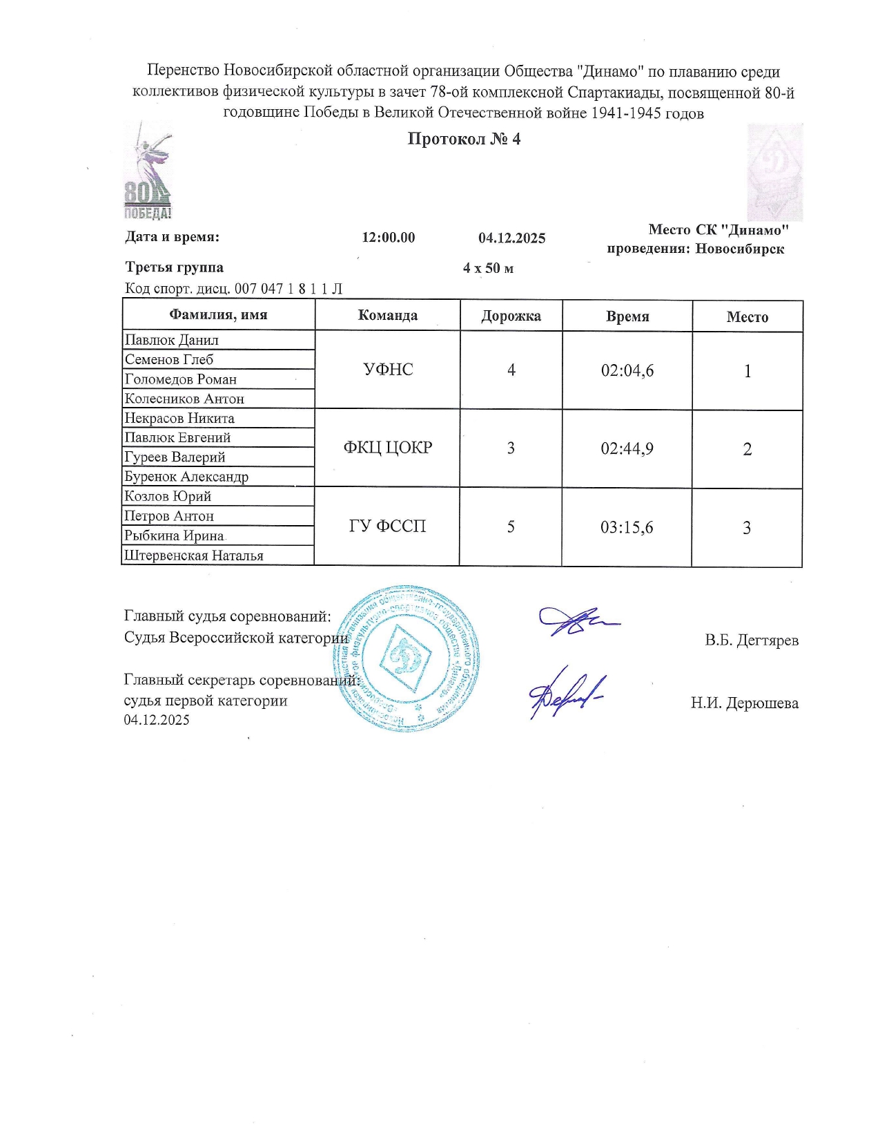 Итоги соревнований по плаванию 4-5 декабря 2025 г.