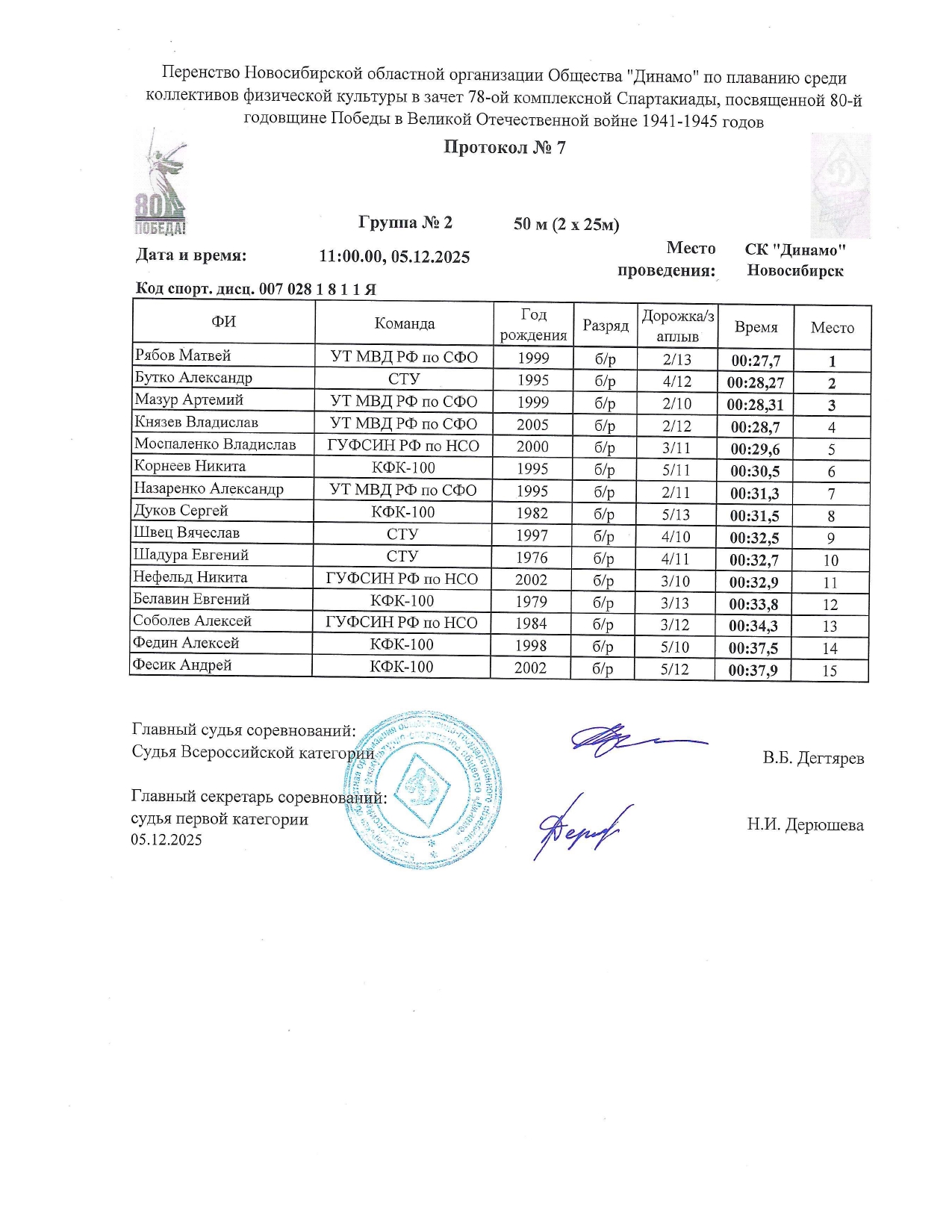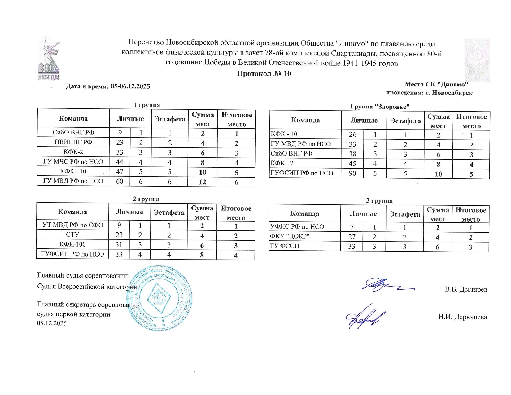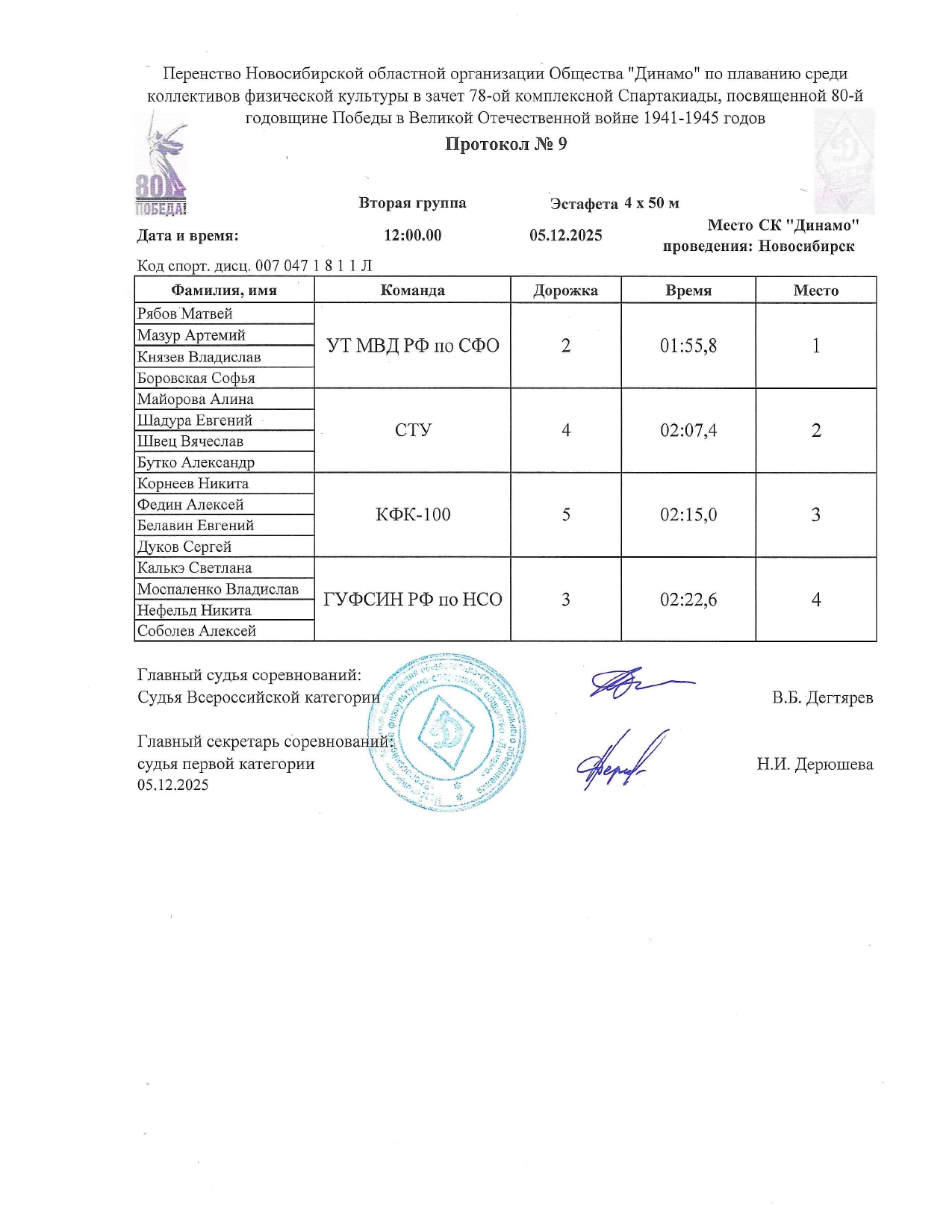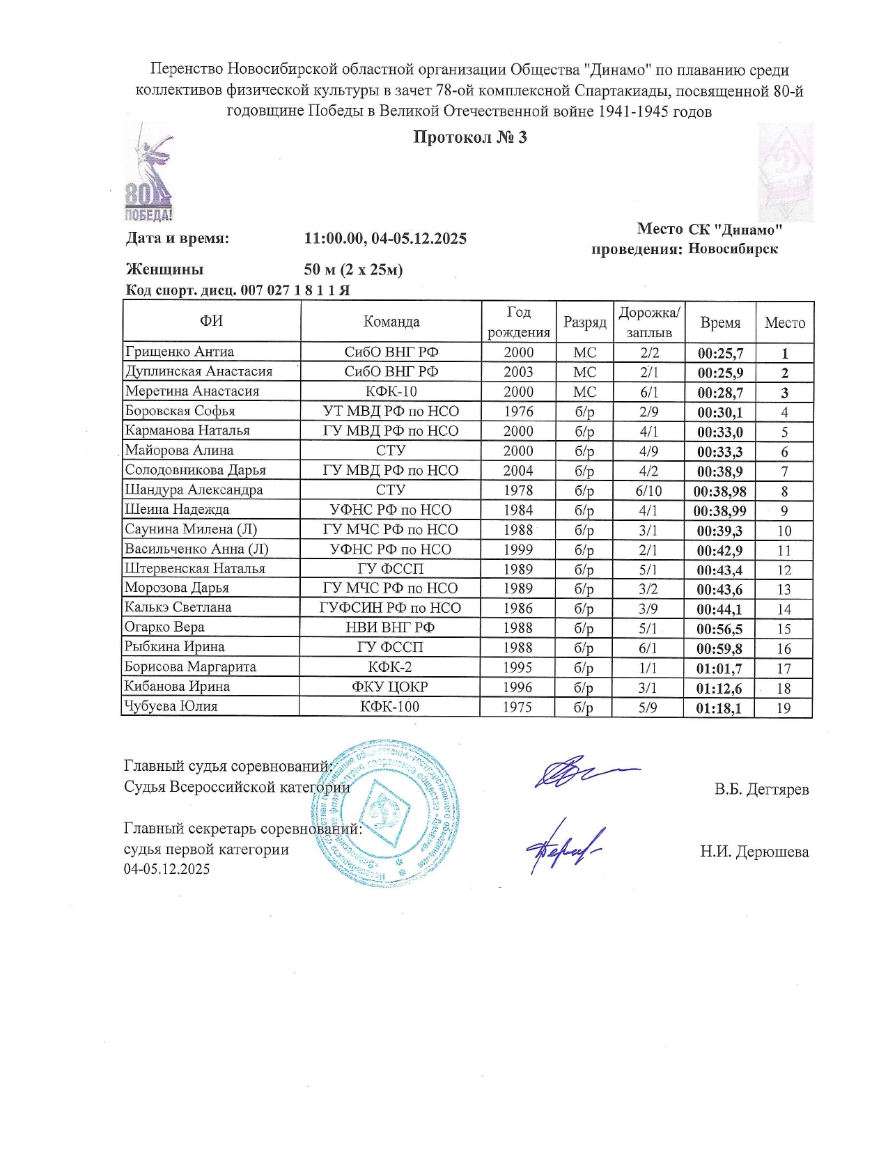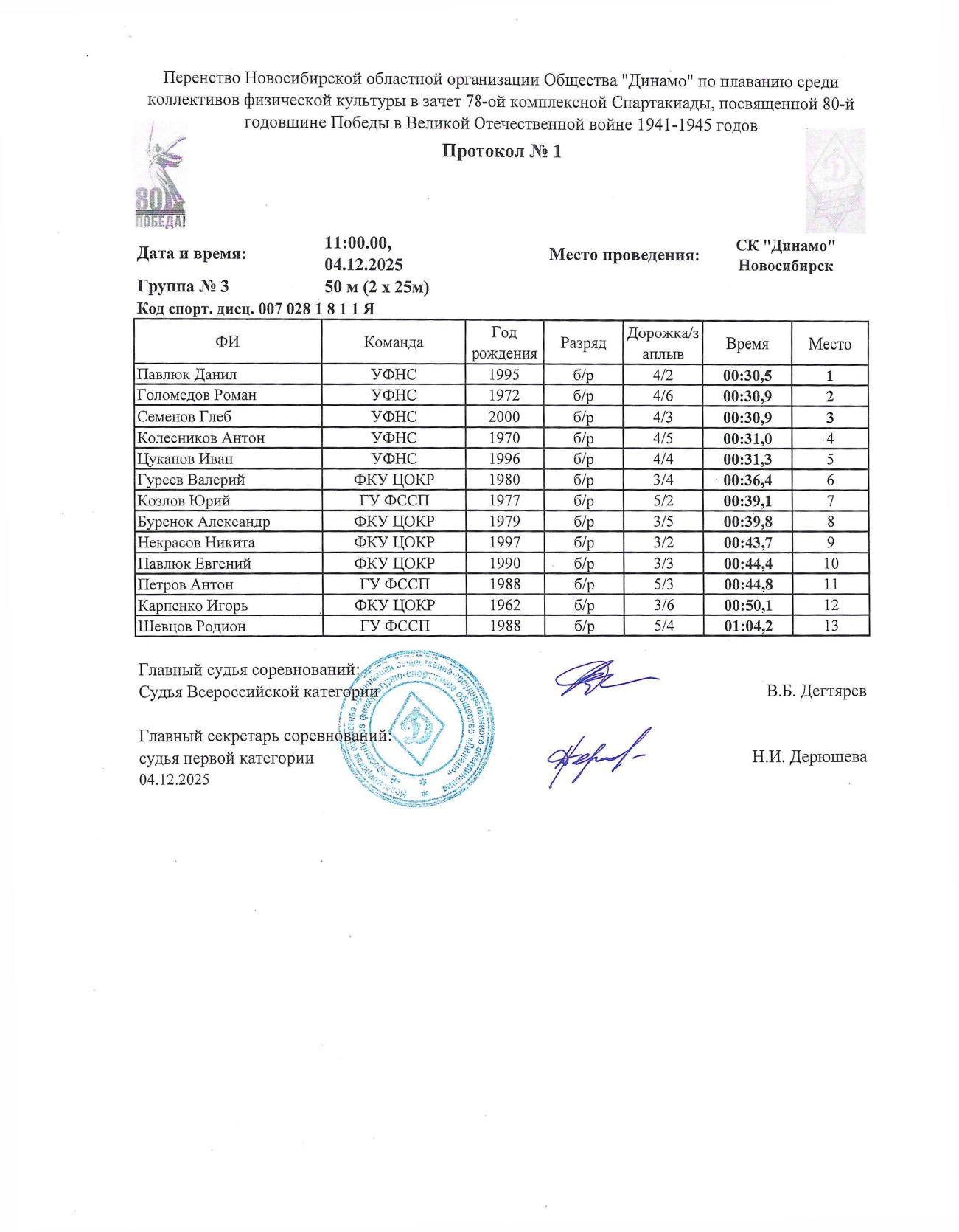 Итоги соревнований по плаванию 4-5 декабря 2025 г.